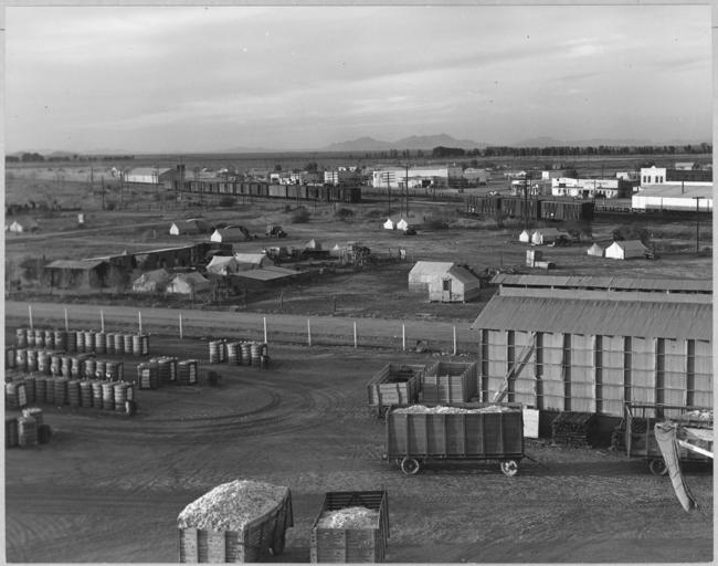 | Keywords: Eloy District, Pinal County, Arizona. Cotton pickers' squatter camp seen across the ginyard, lettuce . . . - NARA - 522268.jpg Scope and content Full caption reads as follows Eloy District Pinal County Arizona Cotton pickers' squatter camp seen across the ginyard lettuce shed and main street of Eloy beyond This camp is adjacent to town obtains water from a single hydrant from the gin Sanitary facilities are virtually absent General notes 522268 Local identifier 83-G-44099 Department of Agriculture Bureau of Agricultural Economics Division of Economic Information ca 1922 - ca 1953 NARA-Author Lange Dorothea 1895-1965 Photographer 1372774 <br /> Still Picture Records Section Special Media Archives Services Division NWCS-S National Archives at College Park 8601 Adelphi Road College Park MD 20740-6001 11/1940 Record group Record Group 83 Records of the Bureau of Agricultural Economics 1876 - 1959 Record group ARC 412 Photographic Prints Documenting Programs and Activities of the Bureau of Agricultural Economics and Predecessor Agencies compiled ca 1922 - ca 1947 documenting the period ca 1911 - ca 1947 Series ARC 521048 File unit File unit ARC Variant control numbers NAIL Control Number NWDNS-83-G-44099 Other versions <gallery> File Eloy_District _Pinal_County _Arizona _Cotton_pickers'_squatter_camp_seen_across_the_ginyard _lettuce_ _ _ _-_NARA_-_522268 tif tif File Eloy_District _Pinal_County _Arizona _Cotton_pickers'_squatter_camp_seen_across_the_ginyard _lettuce_ _ _ _-_NARA_-_522268 jpg jpg </gallery> NARA-cooperation PD-USGov November 1940 in the United States Dorothea Lange Squatter camp Cotton harvesting Cotton bales Pinal County Arizona 1940 in Arizona Eloy Arizona |