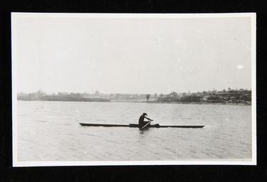 | Keywords: darling harbour darlingharbour new south wales newsouthwales australia rowboat row women scull sculling photo border outdoor blackandwhite black and white Elsie Ellen Hawkins is shown rowing in wooden scull in this silver gelatin photograph. Hawkins combined a career as a hotel publican and boarding house manager with that of a successful sculler. The Australian National Maritime Museum undertakes research and accepts public comments that enhance the information we hold about images in our collection. If you can identify a person, vessel or landmark, write the details in the Comments box below. Thank you for helping caption this important historical image. Object number 00036125 Elsie Ellen Hawkins is shown rowing in wooden scull in this silver gelatin photograph. Hawkins combined a career as a hotel publican and boarding house manager with that of a successful sculler. The Australian National Maritime Museum undertakes research and accepts public comments that enhance the information we hold about images in our collection. If you can identify a person, vessel or landmark, write the details in the Comments box below. Thank you for helping caption this important historical image. Object number 00036125 Elsie Ellen Hawkins is shown rowing in wooden scull in this silver gelatin photograph. Hawkins combined a career as a hotel publican and boarding house manager with that of a successful sculler.