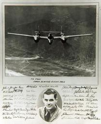 | Keywords: elwyn h. gibbon special collection photo elwynhgibbonspecialcollectionphoto â lockheed corporation âlockheedcorporation autograph autographs elwyn gibbon elwyngibbon gibbon elwyn h. gibbon elwynhgibbon lockheed p-38 lightning lockheedp38lightning lockheed p-38 lockheedp38 p-38 lightning p38lightning p-38 p38 people photo border text blackandwhite black and white Catalog #: 09_01589 Title: Elwyn H. Gibbon Special Collection Photo Additional Information: Memorial photo of Lockheed P-38 aircraft signed by fifty-five flying personnel at Lockheed following Elwyn Gibbon's death. The memorial was presented to his wife Toni. Many famous names appear including Marshall Headle, Jimmy Mattern, Joe Towle, Tony LeVier, H.R. Salmon, Elwyn Gibbon (b.1911 d.1942) was an American pilot who served as a pilot in the Chinese Air Force in the Foreign Volunteer Squadron. Later he served as a Vultee Aircraft Company test pilot in Karachi, India, where he died in a plane crash in 1942. Corporation Name: Lockheed Corporation Tags: Elwyn H. Gibbon Special Collection Photo, Lockheed Corporation Repository: San Diego Air and Space Museum Archive Catalog #: 09_01589 Title: Elwyn H. Gibbon Special Collection Photo Additional Information: Memorial photo of Lockheed P-38 aircraft signed by fifty-five flying personnel at Lockheed following Elwyn Gibbon's death. The memorial was presented to his wife Toni. Many famous names appear including Marshall Headle, Jimmy Mattern, Joe Towle, Tony LeVier, H.R. Salmon, Elwyn Gibbon (b.1911 d.1942) was an American pilot who served as a pilot in the Chinese Air Force in the Foreign Volunteer Squadron. Later he served as a Vultee Aircraft Company test pilot in Karachi, India, where he died in a plane crash in 1942. Corporation Name: Lockheed Corporation Tags: Elwyn H. Gibbon Special Collection Photo, Lockheed Corporation Repository: San Diego Air and Space Museum Archive |