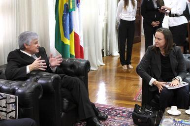 | Keywords: O presidente da Assembleia Legislativa do Paraná, Valdir Rossoni, recebeu o embaixador da França no Brasil, Yves Saint-Geours, na manhã desta terça-feira (15). Participaram da visita o cônsul-geral da França, Sylvain Itté, e a cônsul-honorária da França em Curitiba, Emilie Dely. Foto: Nani Gois / Assembleia Legislativa do Paraná O presidente da Assembleia Legislativa do Paraná, Valdir Rossoni, recebeu o embaixador da França no Brasil, Yves Saint-Geours, na manhã desta terça-feira (15). Participaram da visita o cônsul-geral da França, Sylvain Itté, e a cônsul-honorária da França em Curitiba, Emilie Dely. Foto: Nani Gois / Assembleia Legislativa do Paraná |