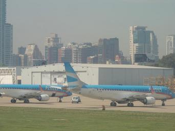 | Keywords: Embraer 190 Austral visto desde A320 LATAM.jpg es Dos Embraer 190 de Austral Lineas Aereas en el Aeroparque Jorge Newbery en Two Embraer 190 from Austral Lineas Aereas at Aeroparque Jorge Newbery 2016-10-11 11 02 04 own Juandedeboca other versions cc-zero Embraer 190 Austral Líneas Aéreas Aircraft at Aeroparque Jorge Newbery |