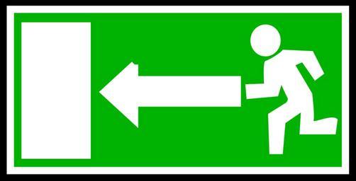 Keywords: emergency exit green white direction route left pointing fire safety escape evacuation