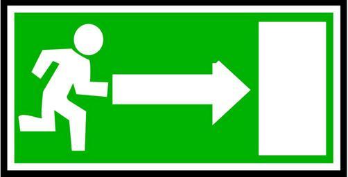 Keywords: emergency exit green white direction route right pointing fire safety escape evacuation