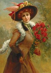 | Keywords: Émile Vernon - Lovely As A Rose.jpg Artwork Creator Émile Vernon Oil on Canvas Size cm 66 91 4 private collection <br /> Property of a Gentleman<br /> Sotheby's New York 18 April 2008 lot 272; Acquired at the above sale by the present owner object history exhibition history credit line place of creation inscription E Vernon signature bottom right http //www liveinternet ru/users/marylai/post389491565 liveinternet ru http //cp15 nevsepic com ua/243cp15/24261/1429090892-emile-vernon-1872-1919 -prekrasna-kak-roza -36-h-26-sm jpg direct link http //arttrans com ua/sub/posters/26890/Emile_Vernon__1872_1919__Beautiful_as_a_rose__36_x_26_cm html arttrans com ua http //www bonhams com/auctions/17644/lot/177/ Bonhams' auction accession number PD-old-auto-1923 1919 Females with roses in art Paintings of women from France Paintings of women wearing hats Women smiling in art Émile Vernon Images from Bonhams |