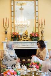 | Keywords: Emine Erdoğan and Michelle Obama.jpg en Emine Erdoğan wife of the Prime Minister of Turkey Recep Tayyip Erdoğan with United States First Lady Michelle Obama in the Yellow Oval Room of the White House on 16 May 2013 2013-05-16 11 13 10 http //www flickr com/photos/whitehouse/8744289047 White House P051613LJ-0175 White House/Lawrence Jackson DEFAULTSORT 20130516111310 PD-USGov Uploaded with UploadWizard Emine Erdoğan Michelle Obama in 2013 Yellow Oval Room Photographs by Lawrence Jackson Uploaded by O'Dea Taken with Canon EOS 5D Mark III |