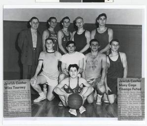 | Keywords: jewish historical society of the upper midwest jewishhistoricalsocietyoftheuppermidwest minnesota digital library minnesotadigitallibrary sports and recreation sportsandrecreation sports-men's and women's basketball sportsmensandwomensbasketball minneapolis hennepin minnesota united states unitedstates sport team sport From left to right, top row: Coach Bob Wolfson, Jay Ettinger, Ferrell Green and Jay Levitan. Middle Row: Marvin Neiltzer, Sherman Rosenblum, Don Kirtchner and Bert Dahlquist. Front row: Don Kennedy Date: 1952 Source: 7.5 x 9.5 Format: Black and white amateur photo Subject: Sports and recreation; Sports-Men's and Women's Basketball Coverage: Minneapolis; Hennepin; Minnesota; United States Local Identifier: MHS581 Link to our record: reflections.mndigital.org/u?/jhs,525 From the Steinfeldt Photography Collection of the Jewish Historical Society of the Upper Midwest. From left to right, top row: Coach Bob Wolfson, Jay Ettinger, Ferrell Green and Jay Levitan. Middle Row: Marvin Neiltzer, Sherman Rosenblum, Don Kirtchner and Bert Dahlquist. Front row: Don Kennedy Date: 1952 Source: 7.5 x 9.5 Format: Black and white amateur photo Subject: Sports and recreation; Sports-Men's and Women's Basketball Coverage: Minneapolis; Hennepin; Minnesota; United States Local Identifier: MHS581 Link to our record: reflections.mndigital.org/u?/jhs,525 From the Steinfeldt Photography Collection of the Jewish Historical Society of the Upper Midwest. |