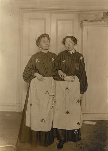| Keywords: the women's library thewomenslibrary women suffrage politics hires monochrome indoor 7JCC/O/02/070 Photograph, printed, paper, monochrome, Emmeline and Christabel Pankhurst standing arm in arm, dressed in mock prison garb; manuscript inscription on reverse 'Mrs and Miss Pankhurst. Return this original to design', printed 'Copyright photo. Fee due to Topical Press 10 & 11 Red Lion Court, Fleet Street, London EC'  7JCC/O/02/070 Photograph, printed, paper, monochrome, Emmeline and Christabel Pankhurst standing arm in arm, dressed in mock prison garb; manuscript inscription on reverse 'Mrs and Miss Pankhurst. Return this original to design', printed 'Copyright photo. Fee due to Topical Press 10 & 11 Red Lion Court, Fleet Street, London EC'   |