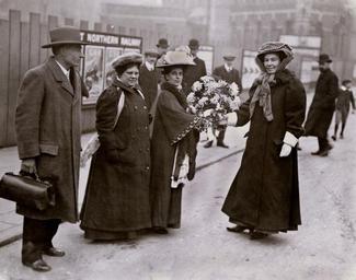 | Keywords: the women's library thewomenslibrary suffrage suffragette emmeline pethwick laurence emmelinepethwicklaurence jennie baines jenniebaines flora drummond floradrummond flowers hires 7JCC/O/02/130 Photograph, printed, paper, monochrome, Emmeline Pethick Lawrence receiving a bouquet of flowers from Jennie Baines, Flora Drummond and Frederick Pethick Lawrence watching; manuscript inscription on reverse 'Mrs Baines', printed 'Please acknowledge LNA Photo. London News Agency Photos Ltd, 46 Fleet Street, EC' 7JCC/O/02/130 Photograph, printed, paper, monochrome, Emmeline Pethick Lawrence receiving a bouquet of flowers from Jennie Baines, Flora Drummond and Frederick Pethick Lawrence watching; manuscript inscription on reverse 'Mrs Baines', printed 'Please acknowledge LNA Photo. London News Agency Photos Ltd, 46 Fleet Street, EC' |