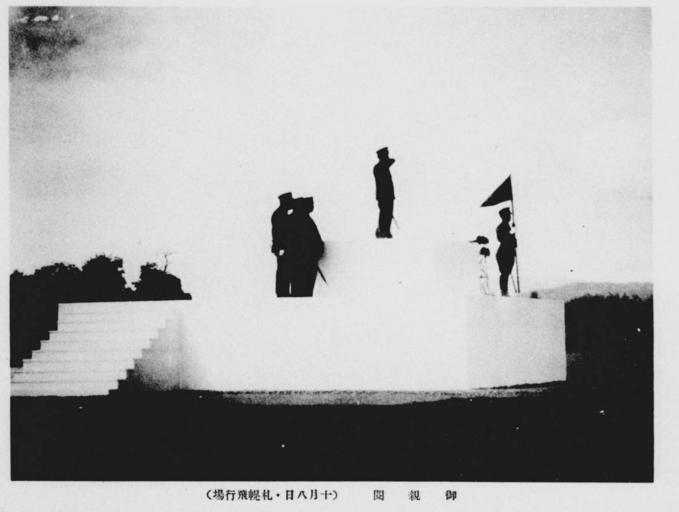 | Keywords: Emperor Showa at Sapporo Airfield.png ja 幌飛行場における陸軍特別大演習の観兵式 昭和11年 en Military review of Army special exercises at Sapporo Airfield in 1936 2015-05-01 ja 陸軍特別大演習並 方行幸 幌市記録(昭和14年) en Record of army special exercises and Emperor's journey by Sapporo city published in 1939 ja 幌市 en Sapporo city other versions Custom license marker 2015 05 01 PD-Japan-organization Uploaded with UploadWizard History of Sapporo | ||||