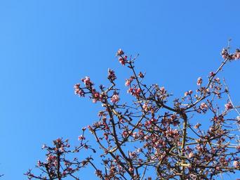Keywords: emperor shrub virburnum farreri winter flowering pink shrubs flowers nature blue sky sunshine background beautiful fragrant