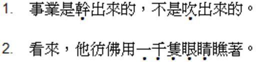 | Keywords: Emphasis mark (horizontal).png zh-hant 橫排中文著重號使用範例(繁體字) zh-hans 横排中文 重号使用范例(繁体字) en Sample of the emphasis mark used in horizontally-typed traditional Chinese own Patricka 2009-03-29 <gallery> File Emphasis mark vertical png 竪排 </gallery> Punctuation |