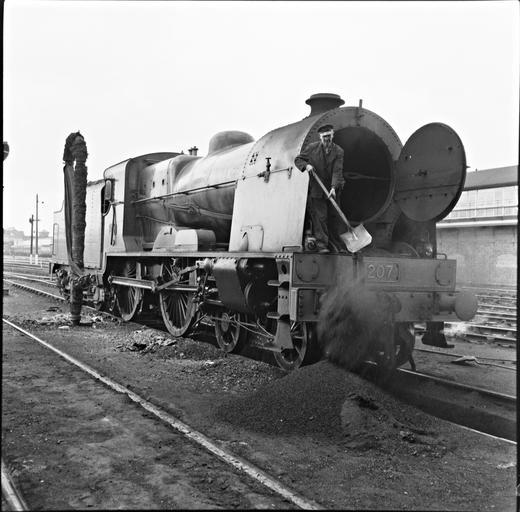 | Keywords: 207 engine 207 engine207 amiens street station amiensstreetstation amiens street amiensstreet dublin ireland leinster dublin connolly dublinconnolly connolly station connollystation shovel ash c.i.é. cié coras iompair éireann corasiompairéireann railwaymen trains railways railroads sunday 21st june 1964 1960s sixties james p. o'dea jamespodea stáisiún uí chonghaile stáisiúnuíchonghaile national library of ireland nationallibraryofireland o'dea photographic collection odeaphotographiccollection blackandwhite monochrome outdoor black and white And here is engine 207 (aka Boyne) at Amiens Street Station (now Connolly Station) in Dublin, being emptied of cinders, clinkers, ash... Date: Sunday, 21 June 1964 NLI Ref.: ODEA 39/38 And here is engine 207 (aka Boyne) at Amiens Street Station (now Connolly Station) in Dublin, being emptied of cinders, clinkers, ash... Date: Sunday, 21 June 1964 NLI Ref.: ODEA 39/38 |