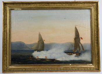 | Keywords: En træfning vedr. Indseilingen til Kristianiafjorden - Norsk Folkemuseum - NF.1915-1928.jpg En træfning vedr Indseilingen til Kristianiafjorden Brukssted Norge Østfold Halden Olje pÃ¥ lerret med pynteramme MÃ¥l Bredde 57 cm Høyde 39 5 cm Dybde Utvendig rammemÃ¥l Med pynteramme 5 4 cm Høyde Utvendig rammemÃ¥l 48 5 cm Bredde Utvendig rammemÃ¥l 65 5 cm Fra utstillingen 1814 “ Spillet om Danmark og Norge ved Norsk Folkemuseum 14 januar 2014 ” 31 juli 2014 NF NF 1915-1928 maleri Unknown Unknown artist / Photo Reinsfelt Anne-Lise / Norsk Folkemuseum PD-old-100 Historical images of Oslofjorden 19th-century sailing ships in paintings Ships under sail 1814 “ Spillet om Danmark og Norge Collections of Norsk Folkemuseum Paintings with frames Naval ships of Denmark in art Sailing in Norway Rowed gunboats of Denmark Rowed gunboats of Norway Photographs by Anne-Lise Reinsfelt Oslofjorden in art Paintings of Norwegian fjords |