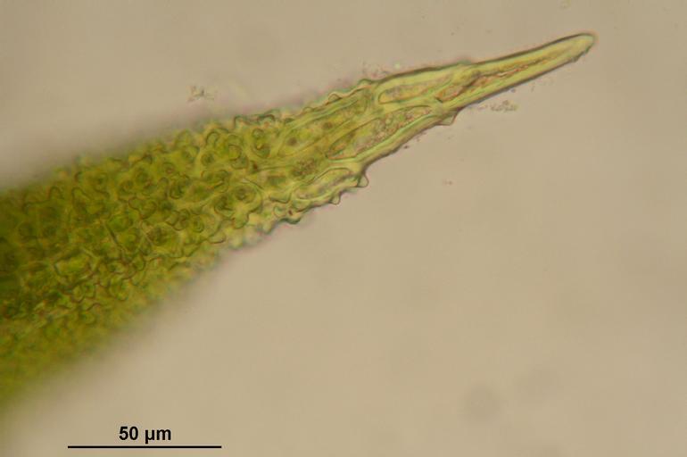 Keywords: Encalypta alpina (b, 124925-470639) 2658.JPG en Encalypta alpina de Encalypta alpina Alpen-Glockenhut Alpen-Glockenhutmoos own HermannSchachner 2013-09-06 Mikroskopaufnahme Blattspitze Encalypta alpina Cc-zero