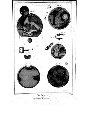 Keywords: Encyclopedie volume 3-376.png Encyclopedie Planches 3 375 377 PD-old-100-1923 Encyclopédie ou Dictionnaire raisonné des sciences des arts et des métiers volume 3 376Diderot et d'Alembert/Clocks