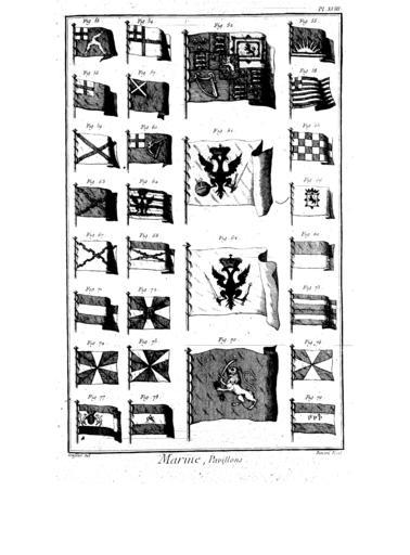 | Keywords: Encyclopedie volume 6-145.png Planches de l'Encyclopédie de Diderot et d'Alembert volume 6 Flag chart from French Encyclopédie part 3 of 8 showing William III of England royal standard etc Fig 53 is the Isle of Man Fig 60 is the Irish Green ensign Fig 77 Amsterdam Encyclopédie flag chart 1 2 3 4 5 6 7 8 Key summarized in translation from captions in images File Encyclopedie volume 6-109 png and File Encyclopedie volume 6-110 png 52 Heraldic banner of William III arms 53 Isle of Man 54 English white ensign old 55 Scottish East India 56 English blue ensign old apparently incorrectly captioned 57 Scottish red ensign 58 Scottish squadron flag 59 Ireland red saltire on white 60 Irish green ensign 61 Holy Roman Empire 62 Holy Roman emperor 63 Blue cross of Burgundy flag 64 Emperor Charles III 65 Brabant 66 Flanders 67 White cross of Burgundy flag 68 Other Flanders 69 Ostend 70 Estates-General flag 71 Holland flag of Prince of Orange 72 Estates-General 73 Holland flag of Prince of Orange doubled stripes 74 Holland flag of Prince of Orange gironny 75 Variation of 74 76 Other variation of 74 77 Amsterdam 78 Dutch East India 79 United Provinces Encyclopédie ou Dictionnaire raisonné des sciences des arts et des métiers volume 6 PD-old Flag charts |