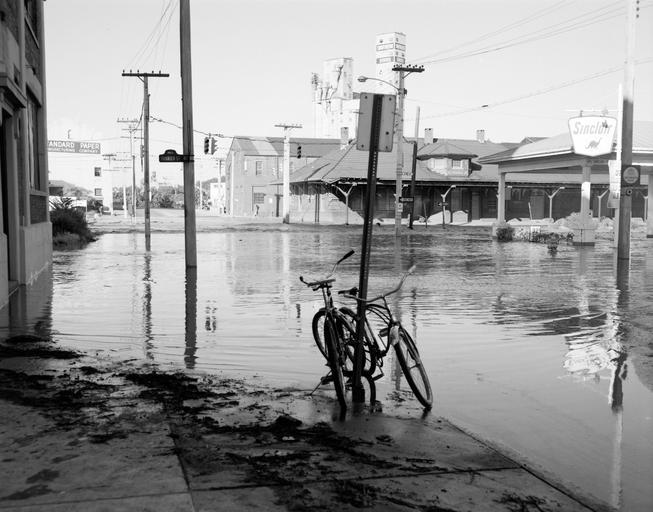 | Keywords: richmond va usa hurricane camille hurricanecamille flood flooding damage natural disaster naturaldisaster virginia richmond va usa virginiarichmondvausa blackandwhite monochrome outdoor black and white Two bicycles are abandoned at the flooded intersection of Hull Street and 2nd Street, on the southern end of the 14th Street Bridge in Richmond. No. 69-2025, Virginia Governor's Negative Collection, Library of Virginia. Two bicycles are abandoned at the flooded intersection of Hull Street and 2nd Street, on the southern end of the 14th Street Bridge in Richmond. No. 69-2025, Virginia Governor's Negative Collection, Library of Virginia. |