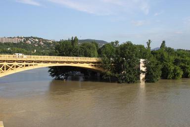 Keywords: End of the Margaret Island.JPG title End of the Margaret Island at the peak level of the water A szigeti bejáró a tetőzéskor own photo by Szilas 2013-06-10 07 08 47 Szilas Commonist Flood in Budapest 2013 Margaret Bridge Budapest