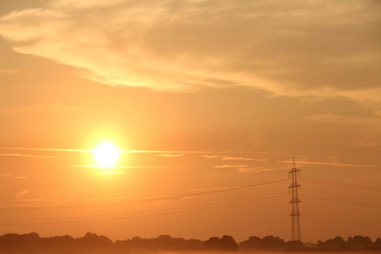 Keywords: energy current power line sunset afterglow power poles power supply upper lines electricity high voltage energy power lines sky