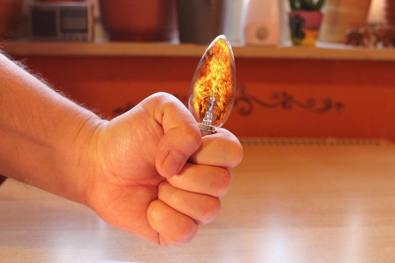 Keywords: energy hand light bulb fire