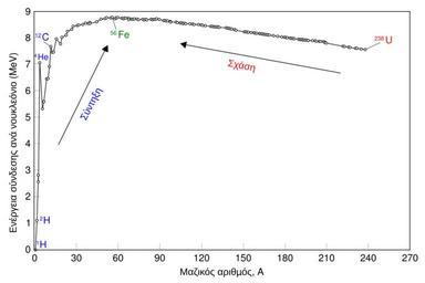 Keywords: Energy per nucleon vs A.svg en Nuclear binding energy curve el Ενέργεια σύνδεσης/νουκλεόνιο - αζικός αριθμός own Xhmikos Nuclear binding energy curves