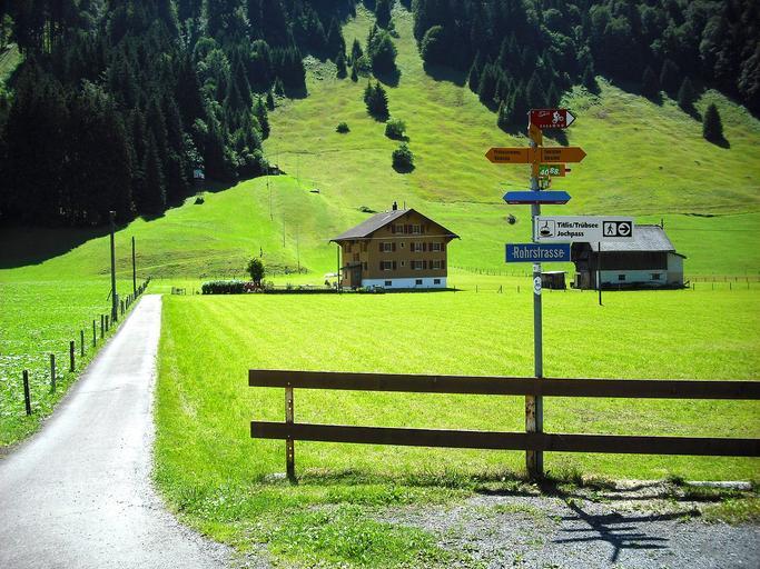 Keywords: engelberg switzerland scenic tourism house grassland house in mountains lawn hut road