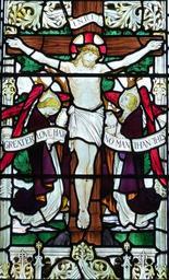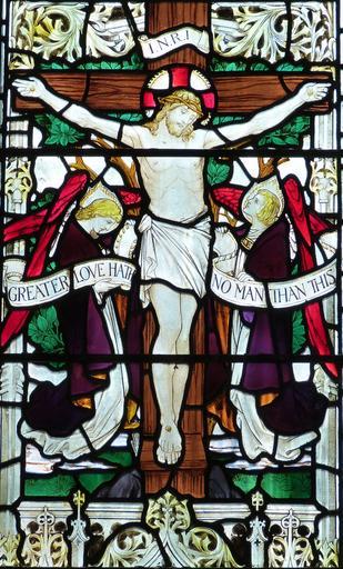 Keywords: england church cathedral united kingdom historically leaded glass stained glass church window image christ passion good friday die crucifixion cross angel gothic windowing