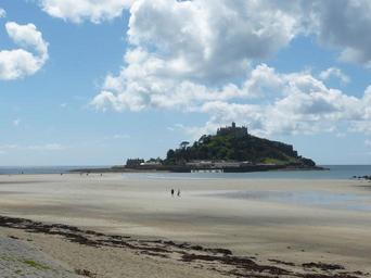 Keywords: england cornwall mount st michael castle fortress historically wall island sea atlantic beach clouds ebb