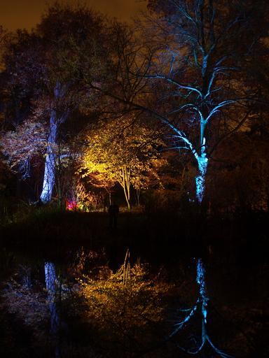 Keywords: england great britain syon park enchanted woodland trees night evening lights lighting colorful colors effect effects sky reflections beautiful enchanting destinations landmark nature outside country countryside water