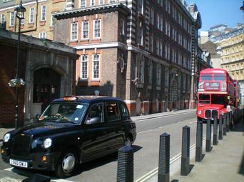 Keywords: england london building street traffic bus taxi
