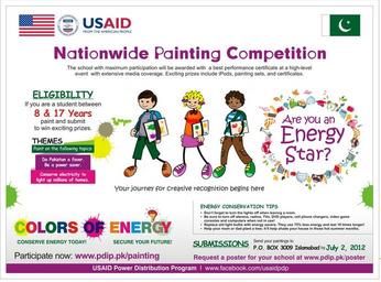 | Keywords: English ad - Colors of Energy.jpg en Islamabad June 8 2012 Homes and schools are among the largest consumers of electricity in Pakistan and if children are engaged and involved in nationwide energy conservation it would result in the reduction of https //en wikipedia org/wiki/Rolling_blackout load shedding and uninterrupted electricity to consumers http //wikioo org/artist php name Claude+Monet Claude Monet Energy consumption in everyday life results in https //en wikipedia org/wiki/Environmental_degradation environmental degradation and load shedding since energy is produced from fuel which is culled from coal oil and https //en wikipedia org/wiki/Natural_gas natural gas These non-renewable sources of energy millions of years in the making will eventually dry up if not conserved 2012-06-12 https //www flickr com/photos/usaid_pakistan/7179686805/ USAID Pakistan other versions PD-USGov United States Agency for International Development |