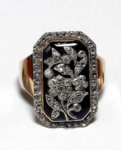 | Keywords: English - Finger Ring - Walters 571785 - Top.jpg The octagonal bezel is set with a floral spray on foiled blue enamel ground set with diamonds between 1750 1800 gold enamel diamond silver beze cm 2 06 ; hoop cm 1 75 d accession number 57 1785 23152 Henry Walters Baltimore date and mode of acquisition unknown Laura F Delano New York date of acquisition unknown by gift Walters Art Museum Gift of Laura F Delano 1947 Jewelry - Ancient to Modern The Walters Art Gallery Baltimore 1979-1980 place of origin England United Kingdom Walters Art Museum license Jewellery in the Walters Art Museum Art of England Media contributed by the Walters Art Museum needs category review |