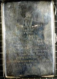 | Keywords: Engraved Silver Cigarette Case.jpg Europeana staff photographer photo license Europeana 1914-1918 Copyright information Europeana 1914-1918 PD-own upload Europeana 1914-1918 project place of creation http //www europeana1914-1918 eu/en/contributions/4403 Engraved Silver Cigarette Case Uploaded with GWToolset Engraved Silver Cigarette Case http //www europeana1914-1918 eu/attachments/51558/4403 51558 full jpg | ||||