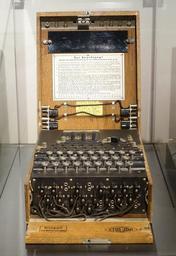| Keywords: Enigma machine, 3 rotor - National Electronics Museum - DSC00197.JPG en Exhibit in the National Electronics Museum 1745 West Nursery Road Linthicum Maryland USA All items in this museum are unclassified The museum permitted photography without restriction 2014-07-21 14 47 23 own Daderot cc-zero Uploaded with UploadWizard Cryptography equipment in the National Electronics Museum Enigma machine | ||||