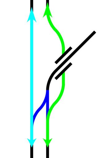 Keywords: Enkele vorkaansluiting5.svg Enkele vorkaansluiting ongelijkvloers treinen nemen beide niet de aansluiting 2016-12-15 23 12 31 own Marten de Vries cc-zero Rail track diagrams