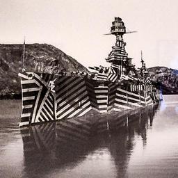 | Keywords: Enlargement of part of Thomas Bangstead work "Last of the Dreadnoughts" that I saw at the Met in NYC in an exhibit there last week depicting a Battleship from TR's time apparently painted with stripes to confuse planes. The technique was called "Dazzle Camouflage" The artistic effect of the patterns on the ship was stunning. Enlargement of part of Thomas Bangstead work "Last of the Dreadnoughts" that I saw at the Met in NYC in an exhibit there last week depicting a Battleship from TR's time apparently painted with stripes to confuse planes. The technique was called "Dazzle Camouflage" The artistic effect of the patterns on the ship was stunning. |