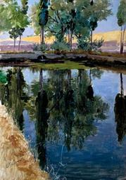 | Keywords: Enrique Simonet - Chopos.jpg  Artwork Creator Enrique Simonet 1918-1923 oil canvas cm 62 44 object history credit line inscription E Simonet signature bottom left ~ accession number Source PD-old-auto 1927 Enrique Simonet Paintings from Spain Reflections in rivers Water reflections in art |