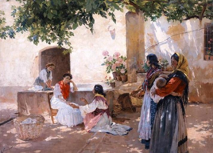 Keywords: Enrique Simonet - La buenaventura - 1899.jpg Artwork Creator Enrique Simonet 1899 oil canvas cm 61 84 Institution Museo de Málaga LangSwitch Departamento de Pintura Abteilung für Malerei Departamento de Pintura Department of Paintings Departamento de Pintura Departamento de Pintura Département de la Peinture Departamento de Pintura Schilderijenafdeling object history credit line inscription E Simonet signature bottom left ~ accession number Source PD-old-auto 1927 Enrique Simonet 1899 paintings Paintings of courtyards and patios |