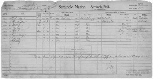 | Keywords: Enrollment for Seminole Census Card 359 - NARA - 267933.tif Scope and content Name Ahalokharjoge Type Parent Sex Male City of Residence e Name Billy Type By Blood Age 5 Sex Male Degree Indian Blood Full Roll Number 1213 City of Residence e Name Echoille Type By Blood Age 45 Sex Male Degree Indian Blood Full Roll Number 1206 City of Residence e Name Hochifke Type By Blood Age 35 Sex Female Degree Indian Blood Full Roll Number 1207 City of Residence e Name Lumsey Type By Blood Age 15 Sex Male Degree Indian Blood Full Roll Number 1211 City of Residence e Name Mary Type By Blood Age 4 Sex Female Degree Indian Blood Full Roll Number 1209 City of Residence e Name Molly Type By Blood Age 16 Sex Female Degree Indian Blood Full Roll Number 1208 City of Residence e Name Peter Type By Blood Age 18 Sex Male Degree Indian Blood Full Roll Number 1210 City of Residence e Name Yoney Type By Blood Age 10 Sex Male Degree Indian Blood Full Roll Number 1212 City of Residence e General notes 267933 Local identifier 75-53A-SEMINOLE 359 Department of the Interior Office of Indian Affairs Office of the Commissioner to the Five Civilized Tribes 1893 - 1914 NARA's Southwest Region Fort Worth NRFA 1400 John Burgess Drive Fort Worth TX 76140 Record group Record Group 75 Records of the Bureau of Indian Affairs 1793 - 1999 Record group ARC 404 Enrollment Cards compiled 1898 - 1914 Series ARC 251747 File unit File unit ARC Variant control numbers NAIL Control Number NRFF-75-53A-22805<br /> NAIL Control Number NRFF-75-53A-25101<br /> NAIL Control Number NRFF-75-53A-30764<br /> NAIL Control Number NRFF-75-53A-36382<br /> NAIL Control Number NRFF-75-53A-40193<br /> NAIL Control Number NRFF-75-53A-40807<br /> NAIL Control Number NRFF-75-53A-42389<br /> NAIL Control Number NRFF-75-53A-44010<br /> NAIL Control Number NRFF-75-53A-52592<br /> NAIL Control Number NRFF-75-53A-SEMINOLE 359 yes Other versions <gallery> File Enrollment_for_Seminole_Census_Card_359_-_NARA_-_267933 tif tif File Enrollment_for_Seminole_Census_Card_359_-_NARA_-_267933 jpg jpg </gallery> NARA-cooperation PD-USGov Seminole census cards NARA TIF images with categorized JPGs |