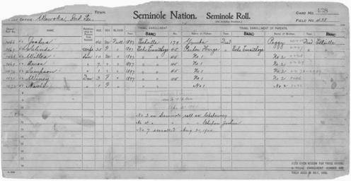 | Keywords: Enrollment for Seminole Census Card 438 - NARA - 268012.tif Scope and content Name Amos Type By Blood Age 7 Sex Male Degree Indian Blood Full Roll Number 1469 City of Residence ee Name Parhos Harge Type Parent Sex Male City of Residence ee Name Joshua Type By Blood Age 40 Sex Male Degree Indian Blood Full Roll Number 1466 City of Residence e Name Martha Type By Blood Age 1 Sex Female Degree Indian Blood Full Roll Number 1472 City of Residence ee Name Peggy Type Parent Sex Female City of Residence e Name Salinda Type By Blood Age 35 Sex Female Degree Indian Blood Full Roll Number 1467 City of Residence ee Name Sampson Type By Blood Age 1 Sex Male Degree Indian Blood Full Roll Number 1470 City of Residence ee Name Willea Type By Blood Age 10 Sex Male Degree Indian Blood Full Roll Number 1468 City of Residence ee Name Winey Type By Blood Age 3 Sex Female Degree Indian Blood Full Roll Number 1471 City of Residence ee Name Yumba Type Parent Sex Male General notes 268012 Local identifier 75-53A-SEMINOLE 438 Department of the Interior Office of Indian Affairs Office of the Commissioner to the Five Civilized Tribes 1893 - 1914 NARA's Southwest Region Fort Worth NRFA 1400 John Burgess Drive Fort Worth TX 76140 Record group Record Group 75 Records of the Bureau of Indian Affairs 1793 - 1999 Record group ARC 404 Enrollment Cards compiled 1898 - 1914 Series ARC 251747 File unit File unit ARC Variant control numbers NAIL Control Number NRFF-75-53A-23091<br /> NAIL Control Number NRFF-75-53A-34015<br /> NAIL Control Number NRFF-75-53A-38184<br /> NAIL Control Number NRFF-75-53A-40737<br /> NAIL Control Number NRFF-75-53A-43762<br /> NAIL Control Number NRFF-75-53A-45598<br /> NAIL Control Number NRFF-75-53A-45675<br /> NAIL Control Number NRFF-75-53A-51337<br /> NAIL Control Number NRFF-75-53A-51697<br /> NAIL Control Number NRFF-75-53A-52625<br /> NAIL Control Number NRFF-75-53A-SEMINOLE 438 yes Other versions <gallery> File Enrollment_for_Seminole_Census_Card_438_-_NARA_-_268012 tif tif File Enrollment_for_Seminole_Census_Card_438_-_NARA_-_268012 jpg jpg </gallery> NARA-cooperation PD-USGov Seminole census cards NARA TIF images with categorized JPGs |