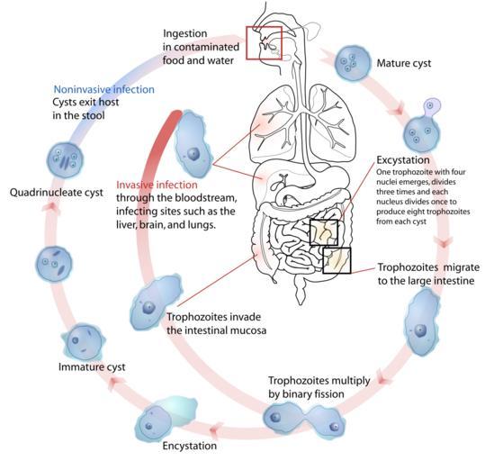 | Keywords: Entamoeba histolytica life cycle-en.svg picture of the day 2009 03 24 Assessments 5 2008 1 Entamoeba histolytica is an anaerobic parasitic protozoan part of the genus Entamoeba It infects predominantly humans and other primates Entamoeba histolytica un protozoaire anaƩrobie parasite appartenant au genre Entamoeba Cet amibe infecte principalement les humains et les autres primates self-made based on http //www dpd cdc gov/DPDx/HTML/Amebiasis htm http //www biology-resources com/documents/amoeba-1 doc http //www microbiologybytes com/introduction/graphics/Enta gif http //www saudeanimal com br/imagens/entamoeba gif http //www sfda gov sa/NR/rdonlyres/E99EC3AD-9B45-4BF3-80BF-251F41E1D1BF/439/Ehistolytica05 jpg and http //www-ermm cbcu cam ac uk/fig001wpc gif together with the book Parasitologia clinica from craig and faust 2008-03-11 Mariana Ruiz Villarreal LadyofHats LadyofHats Entamoeba histolytica life cycle-it svg Other versions/Entamoeba histolytica Translation possible QualityImage SVG diagrams in English Entamoeba life cycle Quality images - valid vector Featured pictures on Wikimedia Commons - vector |