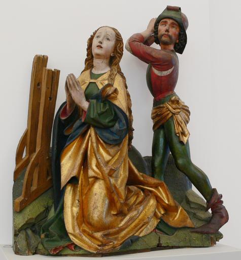 | Keywords: Enthauptung der hl Katharina Bode-Museum.jpg de Enthauptung der hl Katharina eventuell aus dem Hochaltarretabel der Liebfrauenkirche Ravensburg aus dem auch die Ravensburger Schutzmantelmadonna stamnt um 1480 Lindenholz ursprüngliche Fassung en Beheading of St Catherine possibly from the same high altar altarpiec of the Church of our Lady in Ravensburg that the Ravensburg Schutzmantelmadonna is from; c 1480 limewood original colours <br />Skulpturensammlung Inv 423 erworben 1882 Bode-Museum Berlin own 2007 Object Michel Erhart fl Ulm 1469 “1522 or Friedrich Schramm fl Ravensburg c 1480 “c 1515 see also Category Ravensburger Schutzmantelmadonna Photo Andreas Praefcke Object PD-old Photograph Gothic sculpture in the Bode-Museum Ulmer Schule Statues of Saint Catherine of Alexandria Beheadings of Christian saints Martyrdom of Saint Catherine of Alexandria |