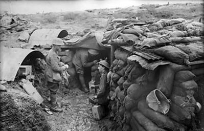 | Keywords: Entrance to a sandbagged dugout.jpg THE THIRD BATTLE OF YPRES PASSCHENDAELE 31 JULY - 10 NOVEMBER 1917 Entrance to a sandbagged dugout occupied by men of the Australian 105th Howitzer battery near Hill 60 E AUS 689 1911-01 1 1917-08-27 Australian official photographer Post-Work User W wolny PD-AustraliaGov Third Battle of Ypres World War I forces of Australia in Belgium Ypres 1917 World War I trench warfare in Belgium Ypres 1917 Sandbags as fortifications Military life in World War I Black and white photographs Collections of the Imperial War Museum |