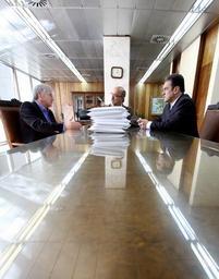 Keywords: Presidente da Alep, deputado Valdir Rossoni (PSDB), o presidente do Tribunal de Contas do Paraná (TCE) conselheiro Fernando Guimarães e o 1º secretário da Alep, deputado Plauto Miró (DEM) Foto: Nani Gois (crédito obrigatório)