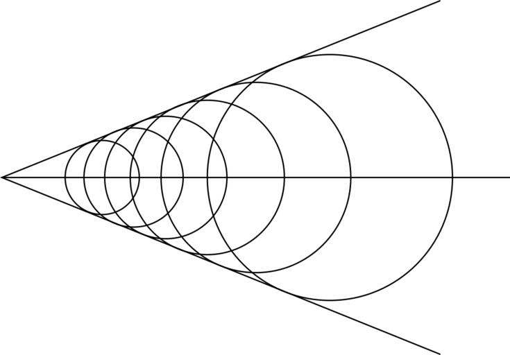 | Keywords: Envelope of the disturbance emitted at successive times.svg en Envelope of the disturbance emitted at successive times fig 12 3 p 410 of G B Whitham 1974 Linear and Nonlinear Waves John Wiley Sons Inc 1974 The circles represent wavefronts 2016-01-31 own Maschen other versions cc-zero SVG physics Fluid dynamics Waves Wakes fluids |