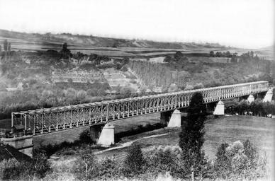 | Keywords: Enzbrücke Besigheim 1874.png eiserne Fachwerkträgerbrücke der Bahnstrecke Bietigheim-Bissingen “Osterburken über die Enz bei Besigheim erbaut 1874 Iron truss railway bridge built in 1874 over the river Enz near Besigheim Germany scan from Ulrich Boeyng Eiserne Eisenbahnbrücken in Baden-Württemberg Konrad Theiss Verlag Stuttgart 1995 ISBN 3-8062-1181-7 Landesdenkmalamt Baden-Württemberg Arbeitsheft 3 p 64 ~ 1874 Author This image is in the public domain due to its age PD-old Besigheim Frankenbahn Railway bridges in Landkreis Ludwigsburg Iron truss railway bridges in Baden-Württemberg Through truss bridges in Germany Iron truss beam railway bridges in Germany Bridges over the Enz Panoramics of bridges |