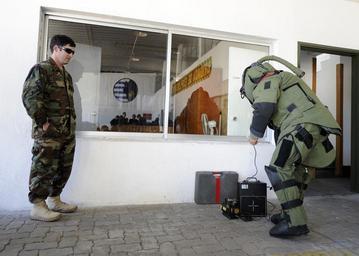 | Keywords: eod explosive ordinance disposal explosiveordinancedisposal navy training uruguay partnership mcast bomb bomberos policia ejercito emergencia capacitacion entrenamiento --Senior Chief Explosive Ordinance Disposal Technician (EWS) Chad L. Harris, a master explosive ordinance disposal (EOD) technician from Green Bay, Wis., observes a Uruguayan EOD technician as he sets up a mobile X-ray device to search the contents of a training aid briefcase that contains an improvised explosive device, Nov. 12, 2010. Harris and other master EOD technicians taught Uruguayan forces basic explosives detection, removal and detonation techniques during a three-week training mission coordinated by the Maritime Civil Affairs and Security Training Command (MCAST). MCAST delivers teams of highly skilled Sailors to partner nations to share their experience and strengthen international relationships as an integral part of the Navy's maritime strategy. [U.S. Navy photo by Mass Communication Specialist 1st Class (SW) Peter D. Lawlor] --Senior Chief Explosive Ordinance Disposal Technician (EWS) Chad L. Harris, a master explosive ordinance disposal (EOD) technician from Green Bay, Wis., observes a Uruguayan EOD technician as he sets up a mobile X-ray device to search the contents of a training aid briefcase that contains an improvised explosive device, Nov. 12, 2010. Harris and other master EOD technicians taught Uruguayan forces basic explosives detection, removal and detonation techniques during a three-week training mission coordinated by the Maritime Civil Affairs and Security Training Command (MCAST). MCAST delivers teams of highly skilled Sailors to partner nations to share their experience and strengthen international relationships as an integral part of the Navy's maritime strategy. [U.S. Navy photo by Mass Communication Specialist 1st Class (SW) Peter D. Lawlor] |