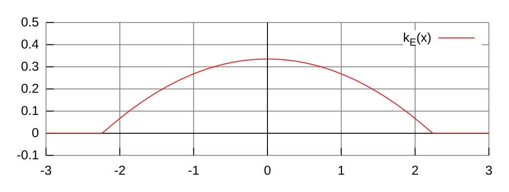 | Keywords: Epanechnikov-Kernel.svg en Plot of the Epanechnikov kernel 3/ 4 sqrt 5 1-x 2/5 2011-06-04 own Accountalive Created with Gnuplot set output 'E \Projekte\wikipedia\Epanechnikov-Kern\epanechnikov svg' set terminal svg set termoption enhanced fname DejaVu Sans set xrange -3 3 set yrange -0 1 5 set grid set xzeroaxis lt -1 set yzeroaxis lt -1 set noborder set xtics nomirror set ytics nomirror set size ratio 3 set xtics 0 5 set ytics 0 1 set samples 80 k x x> -sqrt 5 x<sqrt 5 3/ 4 sqrt 5 1-x 2/5 0 set title 'Epanechnikov-Kern k_ E x 3/ 4 sqrt 5 1-x 2/5 ' plot k x title k_ E x cc-zero Uploaded with UploadWizard Stochastic processes Statistics |