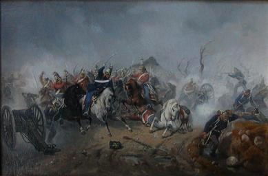 | Keywords: Episode fra Slaget ved Slesvig 23 april 1848.jpg Artwork Episode fra Slaget ved Slesvig 23 april 1848 Ritmester von Würtzens dragoner tilbageerobrer to danske kanoner creator Niels Simonsen 1849 Oil Portrætsamlingen på Frederiksborg Slot Own photographic reproduction of an expired work of art Other versions Battles of the First Schleswig War 1840s battles Conflicts in 1848 23 April 1848 in Denmark Niels Simonsen | ||||