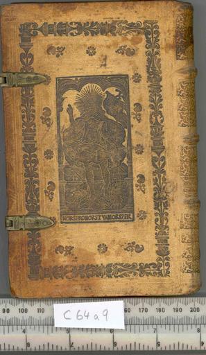 | Keywords: Epistol- Pauli script- ad Romanos enarratio. - Upper cover (c64a9).jpg Style Dated Panel design Religious miscellaneous; Caption Upper cover; Colour White / cream; Edge Gilt and gauffered exhibition history Decorative Technique Tooled in silver Panel stamp in silver; Cover Material Pigskin alum tawed Wooden boards 2 pairs of decorative clasps The name Sebastian Gross tooled on the upper cover Panel dated 1544 The tooling may be oxidised silver or gold Bound 1550-1600 object history Text 1566; Wittenberg; Gross Sebastian object type Cc-zero place of creation Binding Germany place of discovery Unspecified British Library image http //www bl uk/catalogues/bookbindings/LargeImage aspx RecordId 020-000004434 ImageId ImageId 41822 Copyright BL Epistol Pauli script ad Romanos enarratio Uploaded with GWToolset Epistol Pauli script ad Romanos enarratio - Upper cover c64a9 http //www webarchive org uk/bldatasets/bindings/6375_4 jpg Bookbinding 16th-century bookbinding British Library Bookbindings |